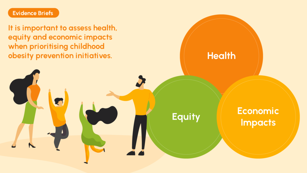 - It is important to assess health, equity and economic impacts when prioritising childhood obesity prevention initiatives.